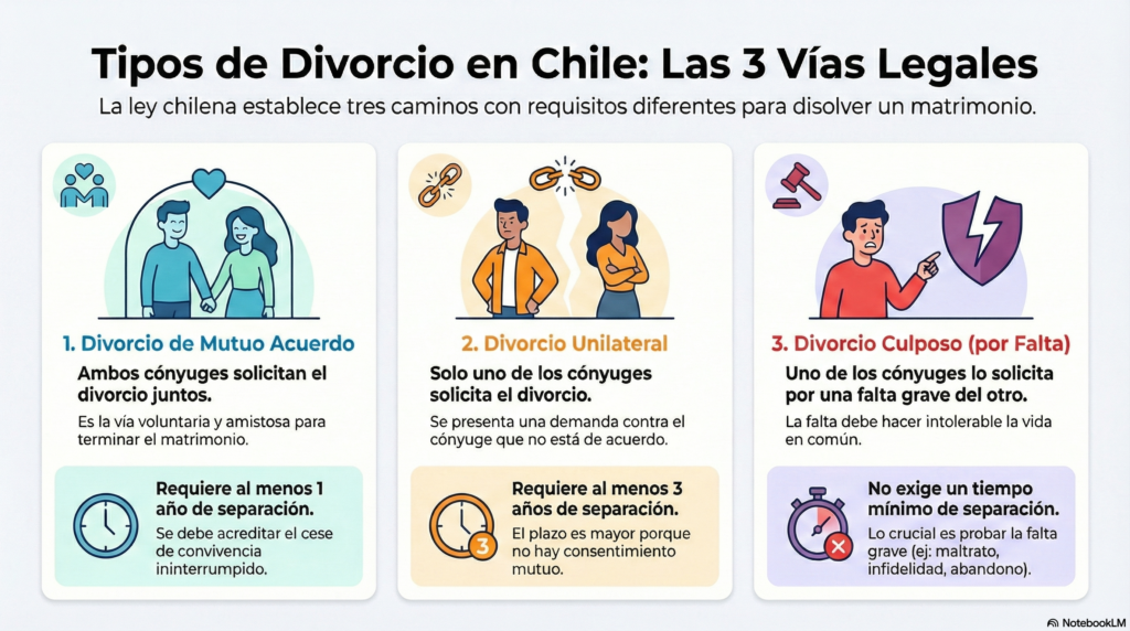 En Chile, existen 3 formas principales de divorcio:
